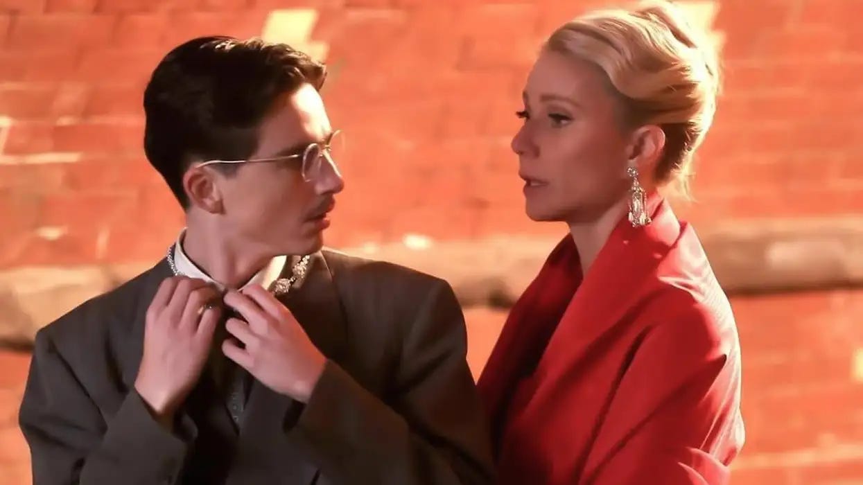 But, really — and is it any surprise? — I’m mostly here for the grand cinematic return of Gwyneth Paltrow. Many have tried, but no one does gorgeous, luxurious sadness quite like Gwyneth, and I absolutely delighted in every second she was on the screen. Her wrinkles! She looks spectacular, and I was honestly so happy to see her acting again that I got a little teary-eyed (I had done a light edible, it should be noted). True, she doesn’t have much to do, but there is literally no one on the planet better at wearing glamorous outfits and lounging in luxurious settings while having the saddest eyes. I hope this marks a shift for her, back to acting and away from being the hotter RFK Jr.